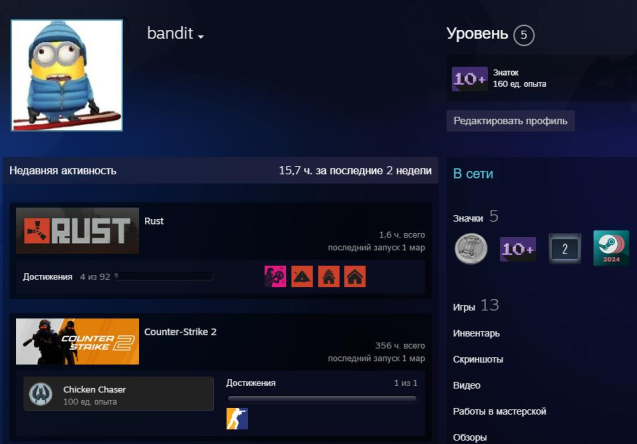 Уровень Steam: 5