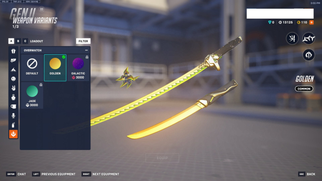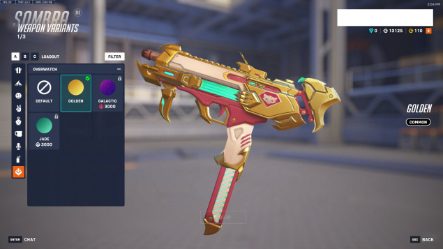Золотое оружие есть на: бастиона, генджи, сомбру, трейсер, дзеньятта + 2 на ваш выбор(6000 монет для покупки либо Jade, либо Golden)