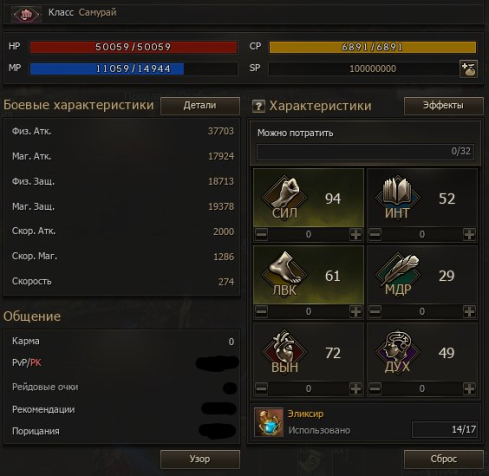 самурай 4*, 91 уровень, Камаэль, Одетый (подробности в описании)