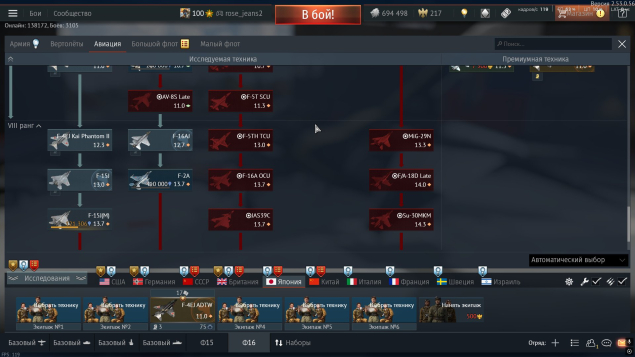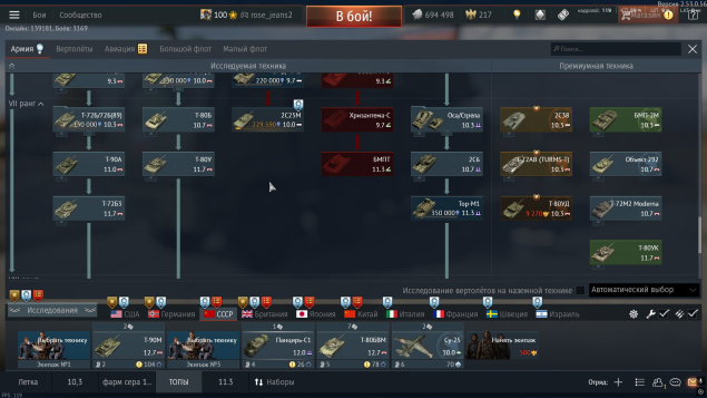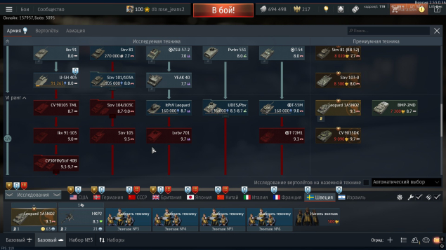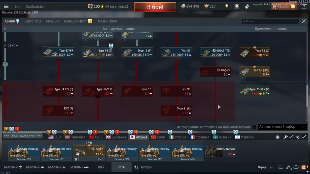 (премиальные: P59-A (83гайджин коина, долларов), Leopard 2 (PzBtl 123), 2С38, T-72AB (TURMS-T), МиГ-21С (Р-13-300), TYPE 16 (PTS), F-4EJ ADTW, Leopard 1A5NO2 ) На аккаунте 12+ премиальных техник. 4-3 из них низкий бр .