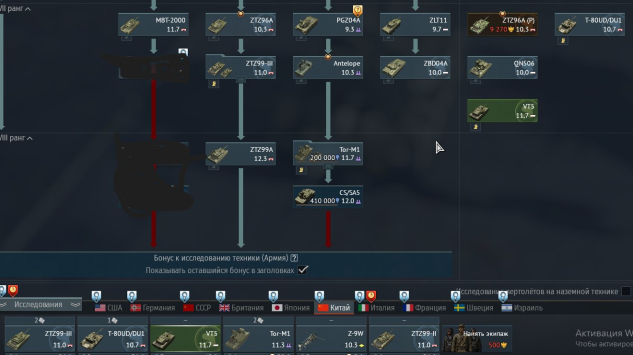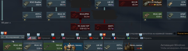 США: 1) наземка: 12.0. Прем/акционная техника: XM 8, CCVL, LOSAT, EFL, Т55Е1, Т14, M8 LAC