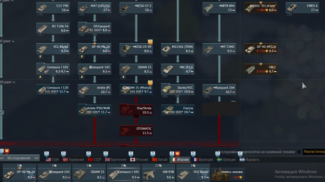 Италия: 1) наземка 10.7 OF-40 Mk.2A талисман, асы. Прем/акционная техника: FIROS, Zrinyi I, Breda 90/53.