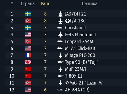 • На аккаунте присутствует 1 премиум техника (за золотые орлы):
