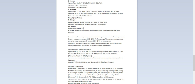 Всего на аккаунте 144 единицы премиумной/марафонной/акционной/выведенной из игры техники. Более подробно по технике указано на скринах с описанием аккаунта, тут лимит на символы.