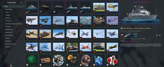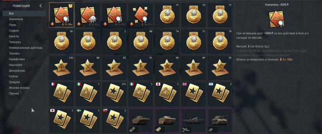 Стоимость той техники, которая есть на моем аккаунте, и которая сейчас продается на бирже — составляет порядка 2 300 — 2 400 ГК. Стоимость пакетной техники, которая есть на данном аккаунте под 70 000 рублей. На покупку золотых орлов было потрачено тоже весьма немало.