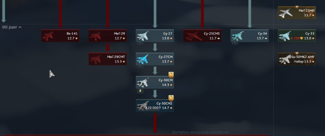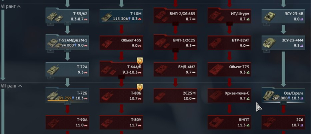 из премов: сша Wolptack 10.3 наземка, phantom f4s 12.0 летка, av8a 9.7 летка. ссср: миг 23мл 11.7 летка, т80уд 10.7 наземка, t72AB (Турмс) 10.3 наземка, т55ам1 9.0 наземка, т34-57 4.7 наземка