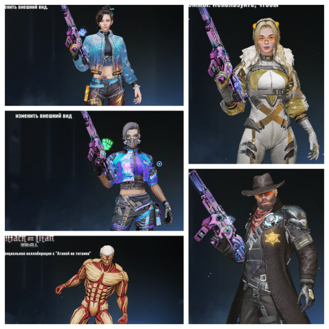 На аккаунте имеются разные камуфляжи для оружия, скины для персонажей, различные анимации, добивания и нашивки.