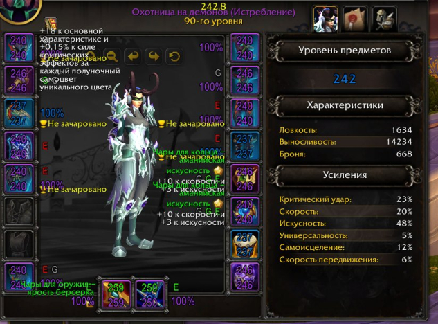 Краткое описание: 90 LVL — ДХ, 242 — ilvl. Подробное описание ниже !