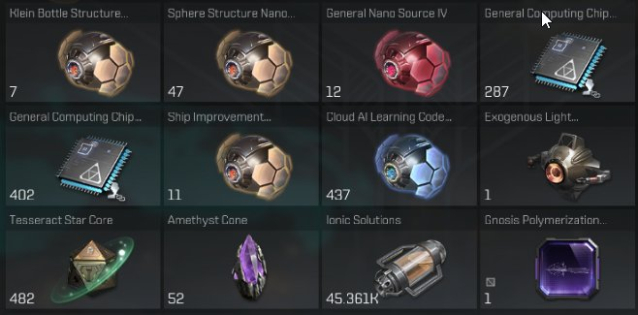 Очень много ресурсов для прокачки наноядер и имплантов