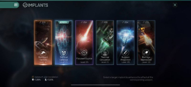 Импланты: Бомбарда 42лвл, Тактическая защита 25 лвл.