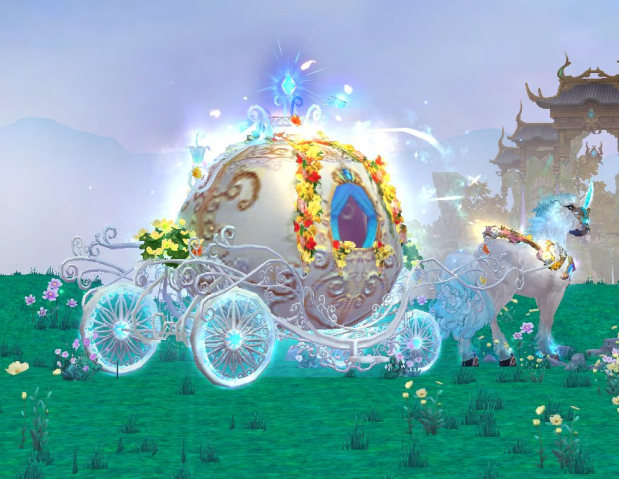 A golden pumpkin carriage is for sale—a refined vehicle for elegant travel.