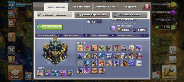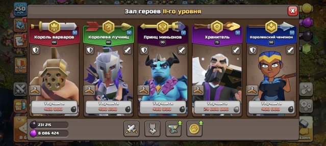 Уровень Ратуши: 17Краткое описание: ⚡️17𝐓𝐇 FULL【250𝐋𝐕𝐋】⚡️💎11 ЭПИК СНАРЯГ💎🔵【ГЕРОИ 100/100/75/50】🔵 💙ФУЛЛ ПОМОЩНИК💙🍀ПЕРЕПРИВЯЗКА🍀