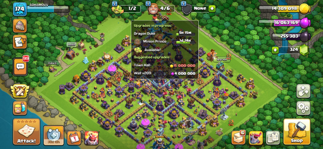 Уровень Ратуши: 15Краткое описание: 15тх фулл⚡️🔥отличный аккаунт⚡️🔥 герои: 90/90/66/65/40⚡️🔥тег: #G82RL2CR0