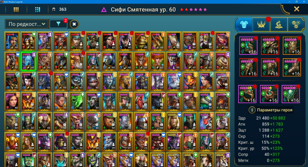 Уровень аккаунта: 100Краткое описание: 🔥⚡ 117 ЛЕГ 7 МЛН 🔥⚡ Сифи Нарсес Лидия Гнишак Эльва Кардиэль Трунда 💎