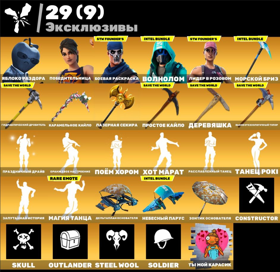 Краткое описание: ❄️Быстрая ВЫДАЧА❄️198 skins🔮PVE🔮Волнолом🔮Кайло🔮Куно🔮Псих🔮Горнолыжка🔮Харли🔮Лара Крофт🔮Pull Up🔮