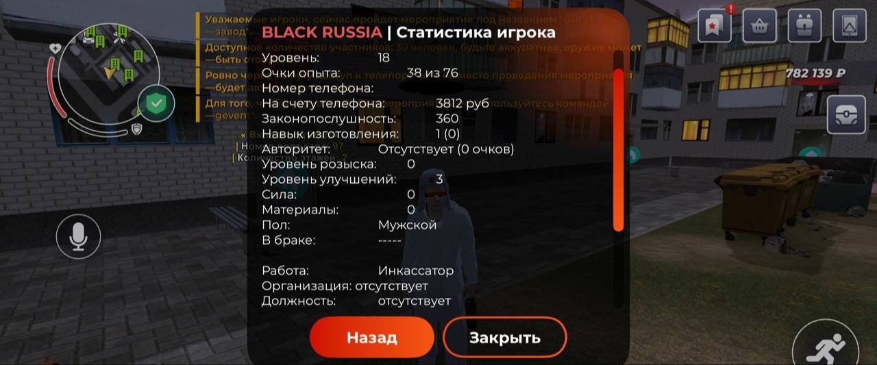Краткое описание: 18лвл Black Russia 12кк имущ