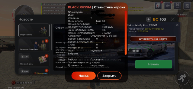 Краткое описание: ⚜️ BR RP Cheboksary ⚜️ 10 LVL | 600.000 | СЕМЬЯ + 2 АВТО |ИНВЕНТАРЬ(1-2КК)| ПОЧТА ВК ДС ОТВЯЗАНЫ! ✨