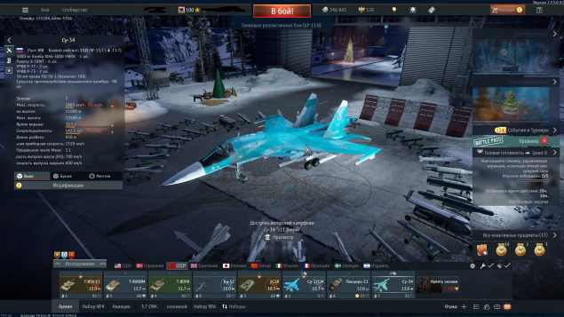 Есть множество топов, открыт самый интересный энд гейм контент: вы получите доступ к самым интересным механикам игры, таким как теплаки, птуры, КАБы, УМПК, современная авиация и техника!