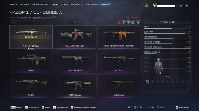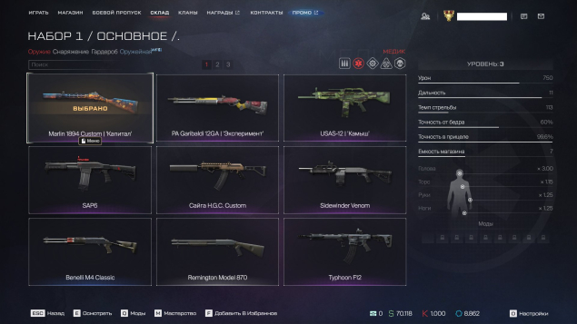 ❤️Медик — Marlin 1894 Custom «Капитал»( 3 ур ), PA Garibaldi 12GA «Эксперимент»( 1 ур ), USAS-12 «Камыш»( 2 ур)