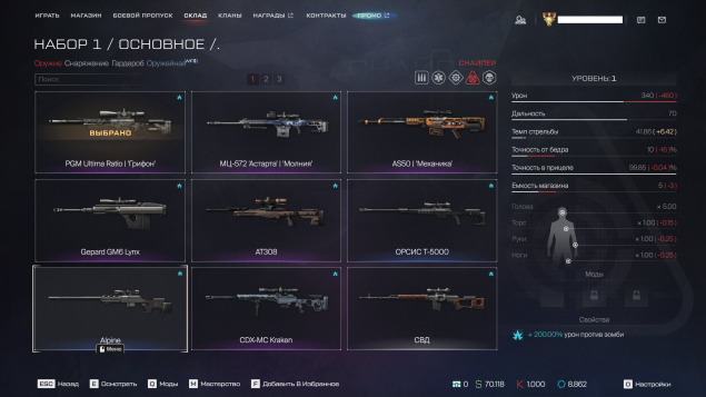 ❤️Снайпер — PGM Ultima Ratio 'Грифон'( 1 ур), AS50 «Механика»( 34ур ), МЦ-572 Астарта 'Молния'( 8 ур)