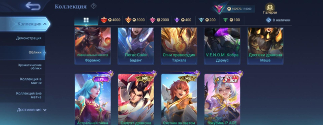 ⚡️ ПОЛНЫЙ ДОСТУП ⚡️ 316 ОБЛИКОВ ⚡️ Лега Люнокс ⚡️ Аспи Руби ⚡️ Ангела ⚡️ ХХ Дариус ⚡️ НАДЕЖНО ⚡️ СМОТРИТЕ ОПИСАНИЕ ⚡️Ранг: Мифический