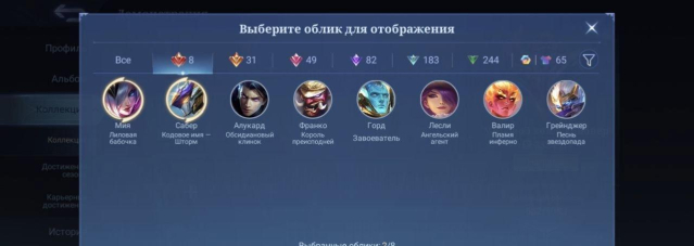 Легендарные скины (8): Мия🔥Сабер🔥Алукард🔥Франко🔥Горд🔥Лесли🔥Валир🔥Грейнджер;