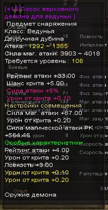106+13 weapon VIP 5% damage, 0.10 mc WHITE 0.20 YELLOW 0.30