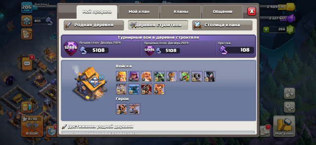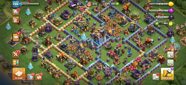Уровень Ратуши: 18Краткое описание: V💎206LVL💎18ТХ💎ГЕРОИ 90/90/61/57/49💎483ГЕМОВ 💎СКРИНЫ💎