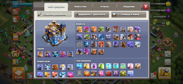 Уровень Ратуши: 18Краткое описание: V💎235LVL💎18ТХ💎ГЕРОИ 70/70/50/53/28💎100ГЕМОВ 💎СКРИНЫ💎