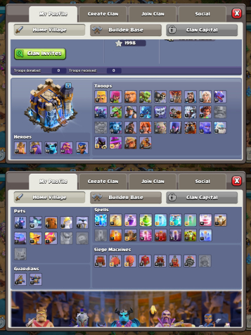 Уровень Ратуши: 18Краткое описание: Xp Level 224~TH 18 Max~Heros-67/67/53/36~Primal Scenary~All Epic Equipment~Connect To Buyer Mail