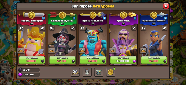 Уровень Ратуши: 17Краткое описание: ✅✅✅Топ аккаунт 17 Тх 241 уровень много скинов герои 92/94/66/70/42✅✅✅