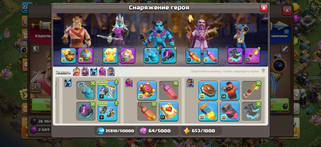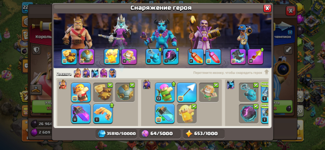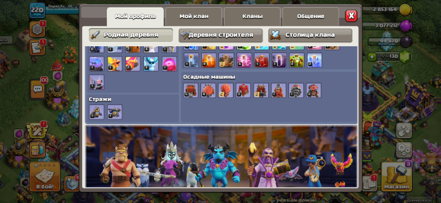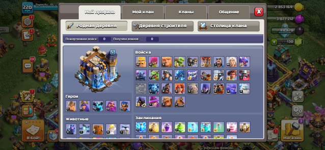 Уровень Ратуши: 18Краткое описание: V💎220LVL💎18ТХ💎ГЕРОИ 67|95|70|50/26💎 150ГЕМОВ 💎СКРИНЫ💎