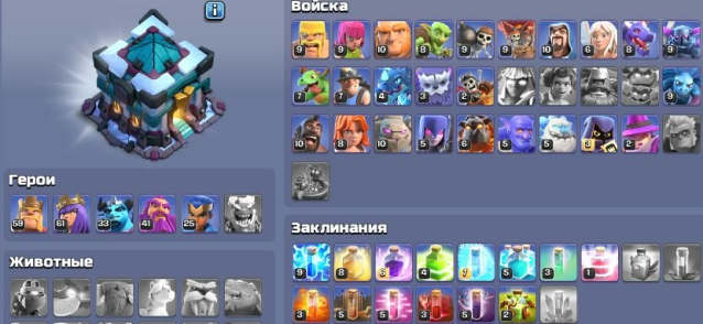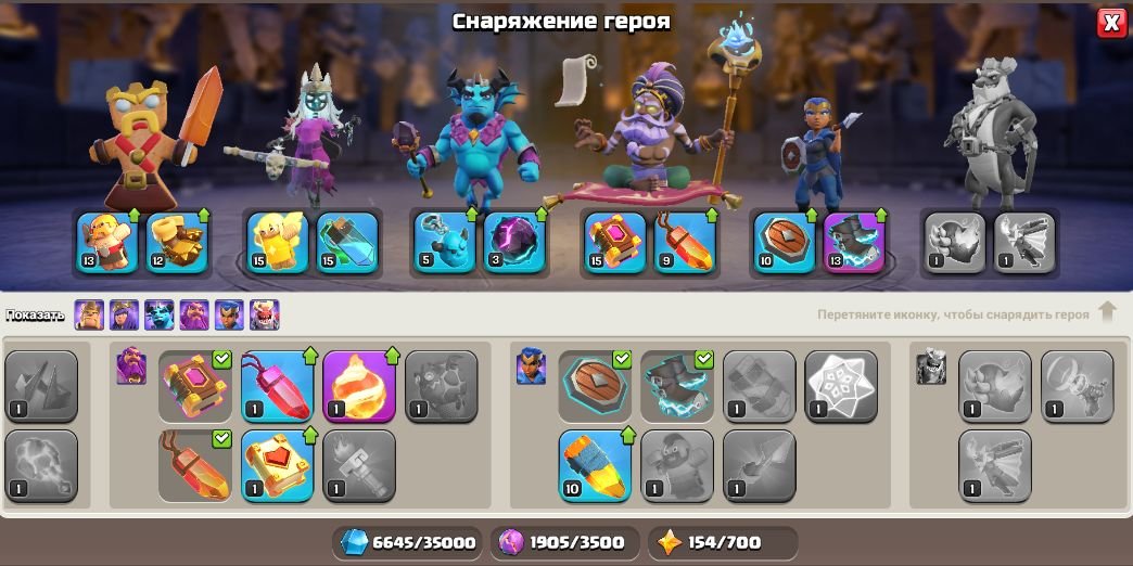 Уровень Ратуши: 13Краткое описание: 💎160LVL💎13ТХ💎ГЕРОИ 59/61/33/41/25💎584 ГЕМОВ 💎СКРИНЫ💎