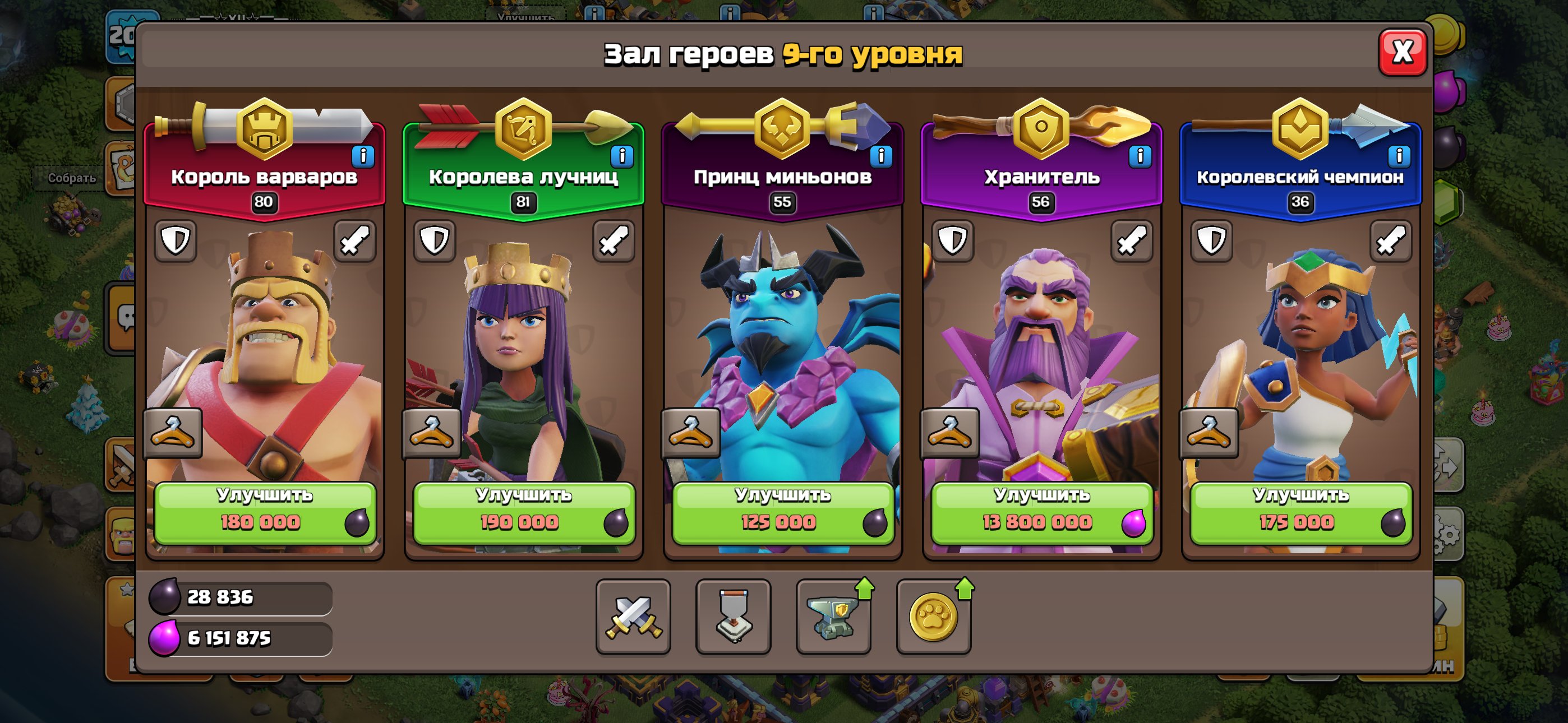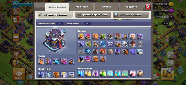 Уровень Ратуши: 15Краткое описание: V💎208LVL💎15ТХ💎ГЕРОИ 80/81/55/56/36💎940 ГЕМОВ 💎СКРИНЫ💎