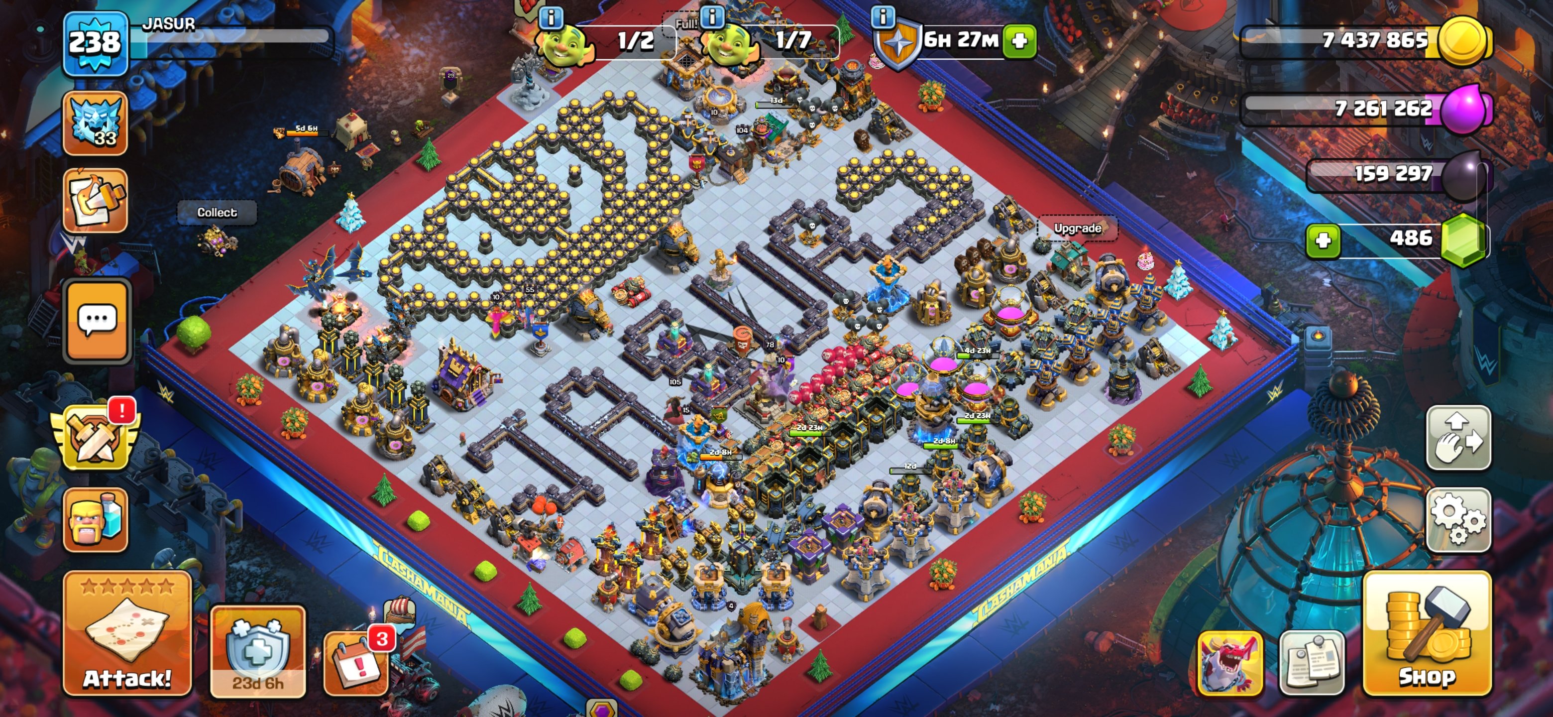 Уровень Ратуши: 18Краткое описание: 18 тх 🔥⚡️оформление🔥⚡️скины на героев⚡️🔥герои: 104/105/91/78/55🔥⚡️ тег: #QUYLC9JYC