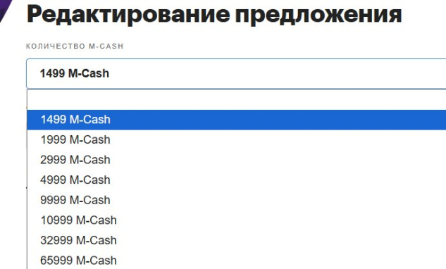 Поскольку в редактировании предложения нет фильтра на 499 M-Cash то пишу в описании количество товара которое вы получите.