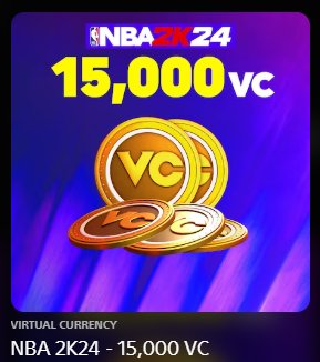 Игра: NBA 2K24Количество VC: 15000 VC
