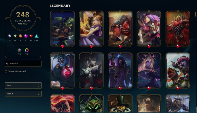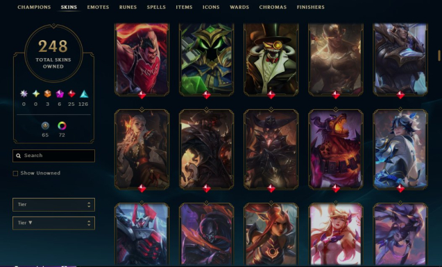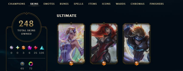 ✅ Skins: 251 total, including rare old skins (Fiddlesticks & Alistar)