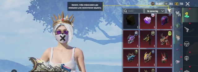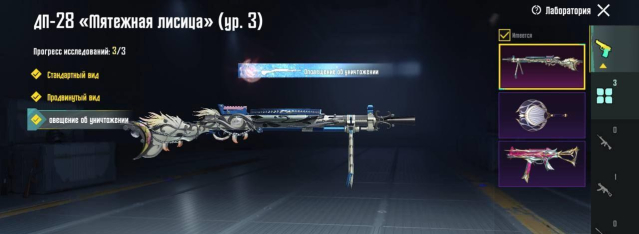 — В инвентаре всего порядка 100 различных скинов на оружия, среди которых — 3 улучшаемых (ДП-28 3/3, UMP-45 4/5 и сковородка, имеется два килл чата), а также — два легендарных скина на M416, к сожалению не промачиваемых, но для коллекции самое то)