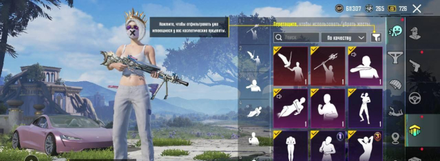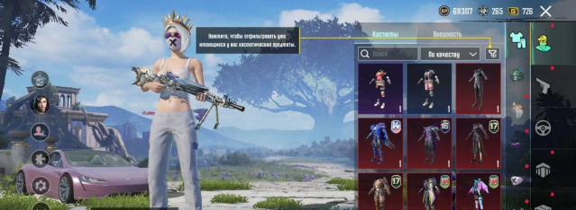 — Что касаемо гаража, имеется 7 скинов. Tesla Roadster, UAZ «Мышеловка», Мотоцикл «Неоновый прыгун», Мотоцикл «Сумрачный лес», и целых 5 различных багги. А также самолеты, имеется 8 скинов, из которых самым редким является «Кристальная чистота», которая напоминает своим окрасом скин на M416 Ледник.