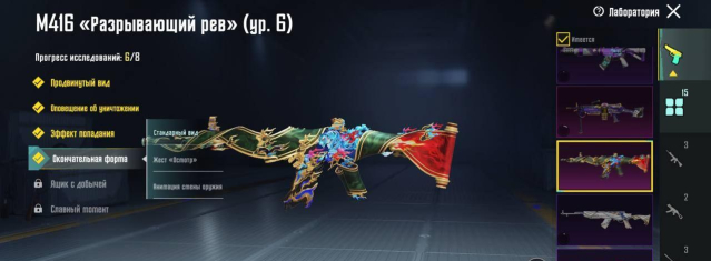 М416 Разрывающий Рев 6 уровень, ВСС Зимний патруль 1 уровень, MP7 Конфетный призрак 1 уровень, NS2000 Нержавеющий бродяга 1 уровень, P90 Золотой коготь 3 уровень,Mk47 Экспериментальный кролик 1 уровень, M249 Сумасбродный император 1 уровень, СКС Жемчужный приговор 1 уровень,
