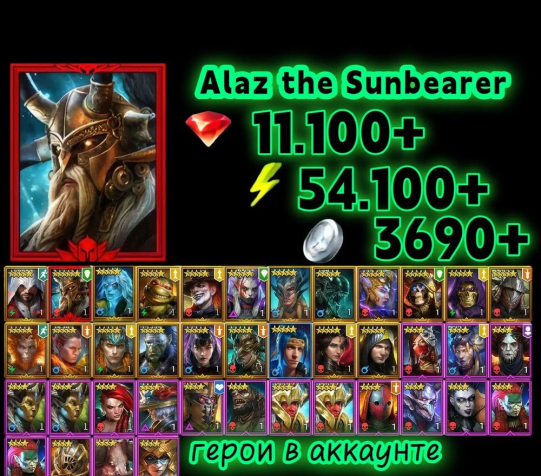 ⚡️ ПОЛНЫЙ ДОСТУП ⚡️ Alaz the Sunbearer ⚡️ 11.100+ Рубинов ⚡️ 54.100 Энергия ⚡️ СМОТРИТЕ ОПИСАНИЕ ⚡️Эпических героев: 16