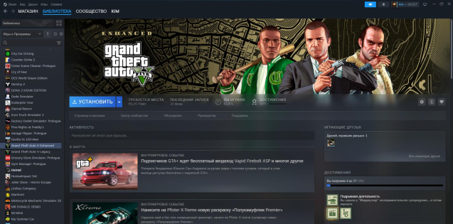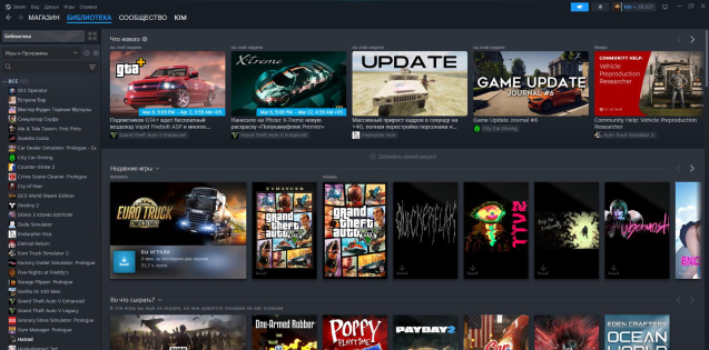 кз аккаунт, по акккаунту есть гта 30 игр в некоторых играх по 100 часов по библиотеке Asetto corsa ets2 hatred postal 2,3 payday,RV There Yet,Endorphin Vice, City Car Driving и там по мелочи суммарно 30 игр красивое оформление есть 2 фона профиля но PlayNTrade не пропускает