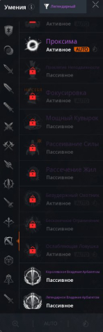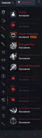 Красные скиллы — Побег, Разум вампира, Дисциплина, Ограничивающий выстрел болтом, Цепной выстрел + 2 за адену