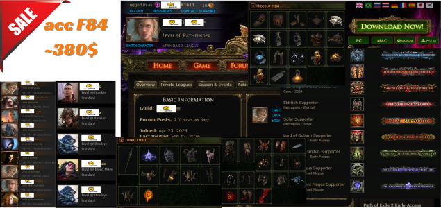 [F84] Joined: April 2024, total 380$, shacked immortal, poe1 & poe2, 97 уровень, Охотница