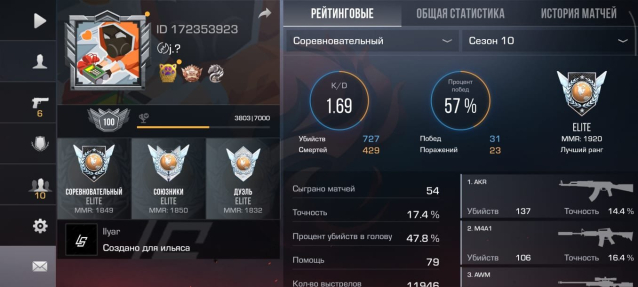 Подробное описание: трипл элита, инв на 17-20к голды, 3 ножа, 1 перчи и много аркан, лидерка в клане, хорошее кд как в общей так и соревновательной статистике