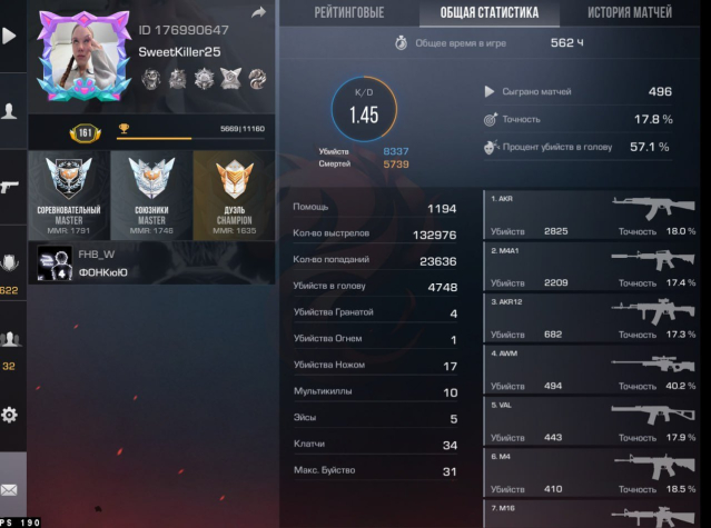 Звание: EliteКраткое описание: Elite, нож+перчи+ скины, множество медалей