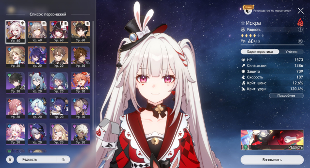 5⭐: Искра, Искорка, Дань Хэн: ОП, Яньцин, Вельт, Зеле.