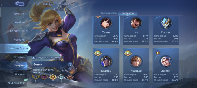 ⭐Хай вр⭐Лега Госсен⭐АОТ Фанни⭐11.11 Госсен⭐Коллектор ЛСС⭐Аспирант Гвиневра⭐Вечная гарантия⭐, Продажа, Ранг: Мифический, Уровень: 85, Процент побед: 61