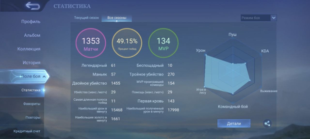 Процент побед: 49